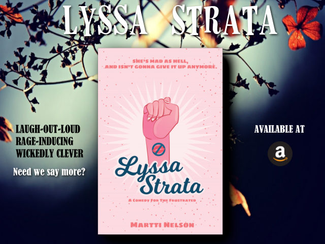 - Yes, the women of Athena (Massachusetts) go on a sex strike for equality. I thought about this subject a lot—what would drive a group so over the edge that they go on a sex strike? How long should it last? And does it count even if he’s super cute and has an amazing butt?! These are the deep literary questions I answer in Lyssa Strata.